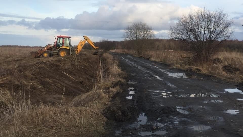 Работы начались с очистки мелиоративных канав вдоль трассы.