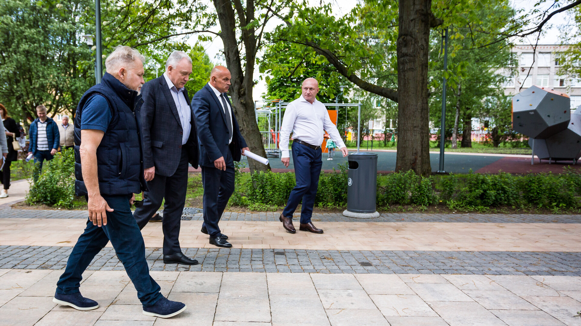 Вместе с комиссией, состоящей из сотрудников горадминистрации, представителей подрядчика и жителей близлежащих домов, они прошли по обновлённому скверу. Посмотрели, как уложена новая плитка, в каком состоянии находятся деревья, прижились ли новые зелёные насаждения, взошёл ли газон. Большой интерес вызвали саженцы, закреплённые на особых фигурных подпорках.