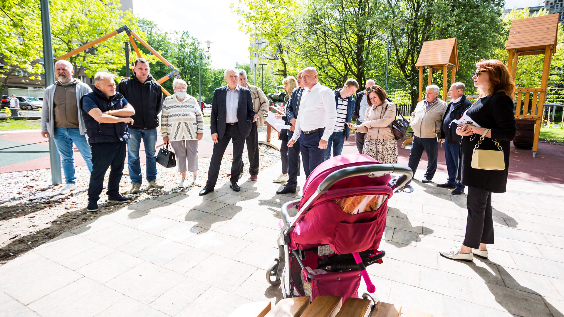 Юрий Самородов депутат по округу. В 2019 году вместе с жителями на общегородском голосовании он добился включения общественной территории на Соммера — Рокоссовского в план финансирования. Сегодня он выслушал мнения калининградцев. В основном люди довольны. На детской площадке не хватает песочницы. Координатор «Народного контроля» пообещал рассмотреть этот вопрос с подрядчиком.
