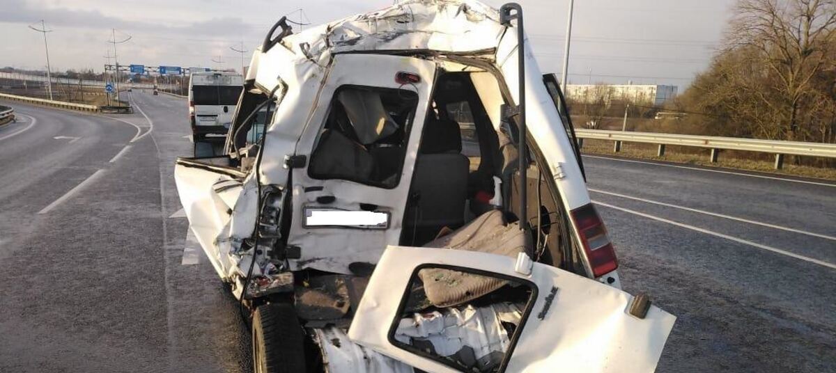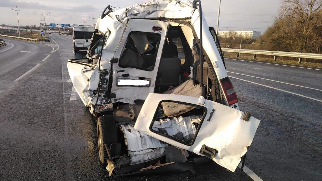 На окружной Калининграда легковушка Renault снесла половину микроавтобуса. Об этом сообщает пресс-служба регионального УМВД.