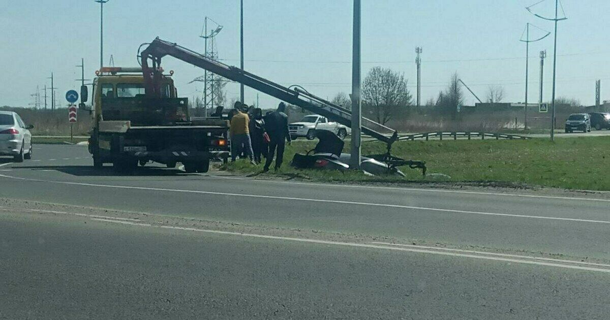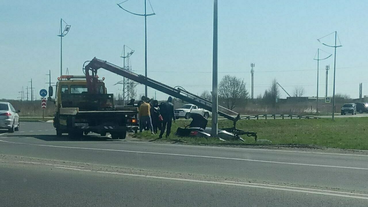 Легковушку занесло в среду, 27 апреля, около 9:20 на окружной дороге в районе поворота на Гурьевск.