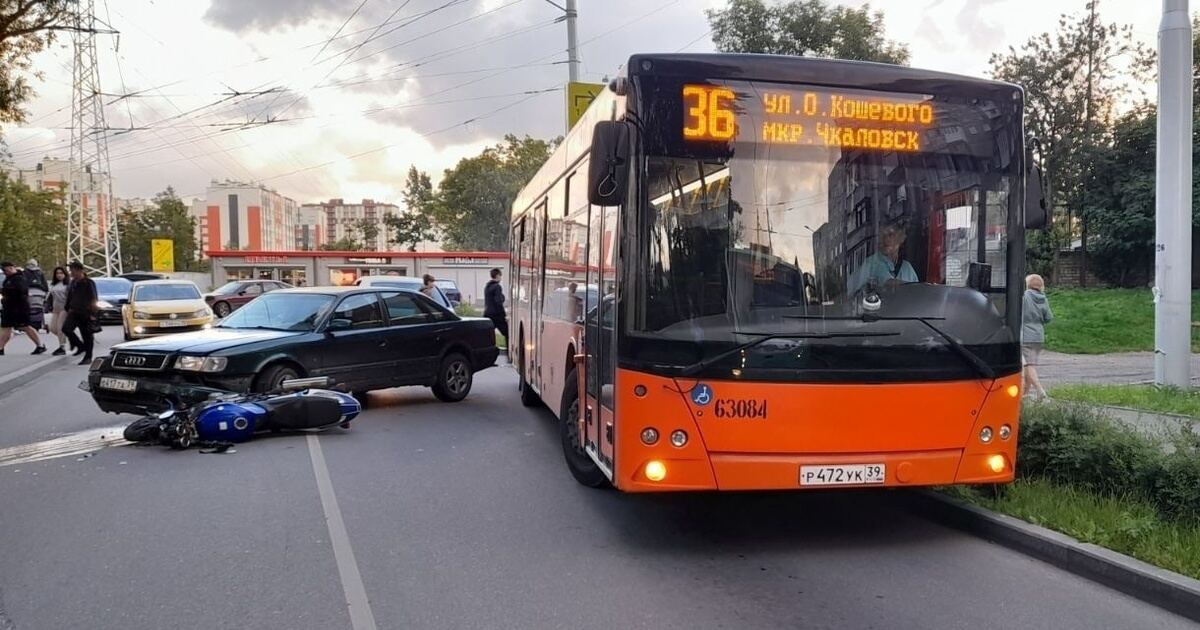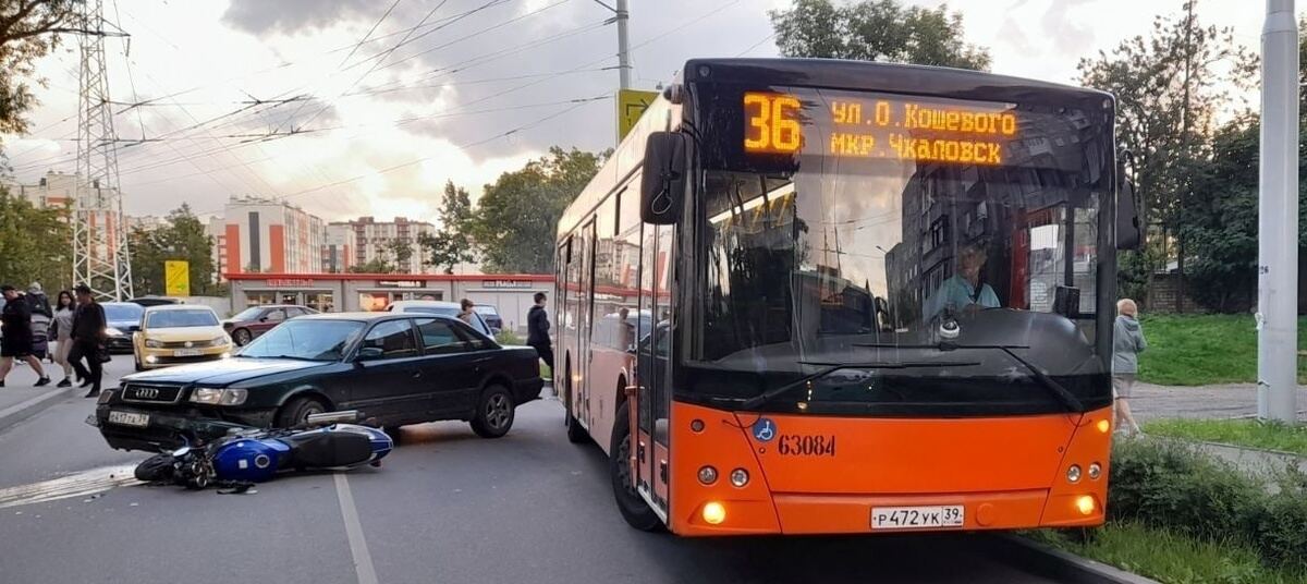 ДТП с участием мотоцикла и Audi произошло в Калининграде на улице Инженерной 15 июля. Об этом сообщают очевидцы в «Сообществе автомобилистов Калининграда и области» «ВКонтакте».