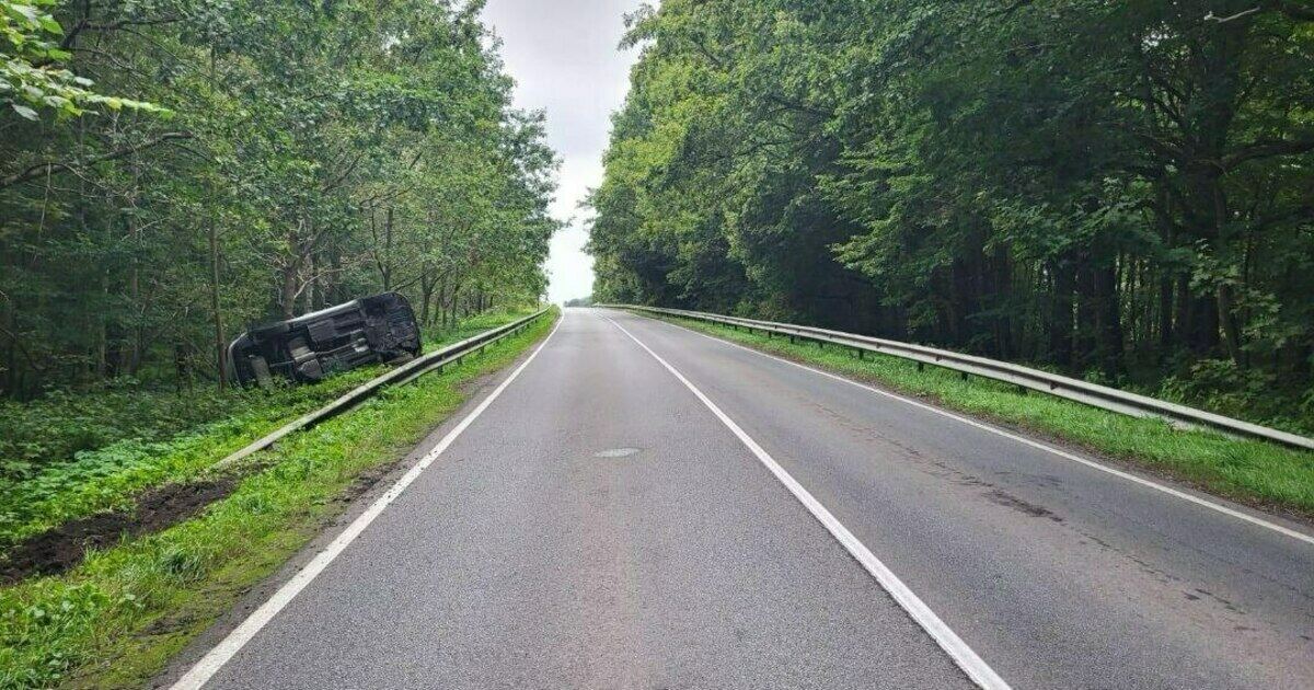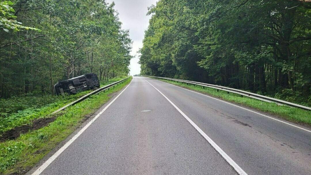 В Зеленоградском районе KIA вылетела на встречную полосу, съехала в кювет и опрокинулась на бок. Об этом сообщает пресс-служба регионального УМВД.