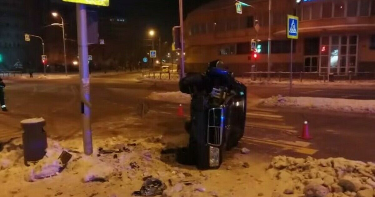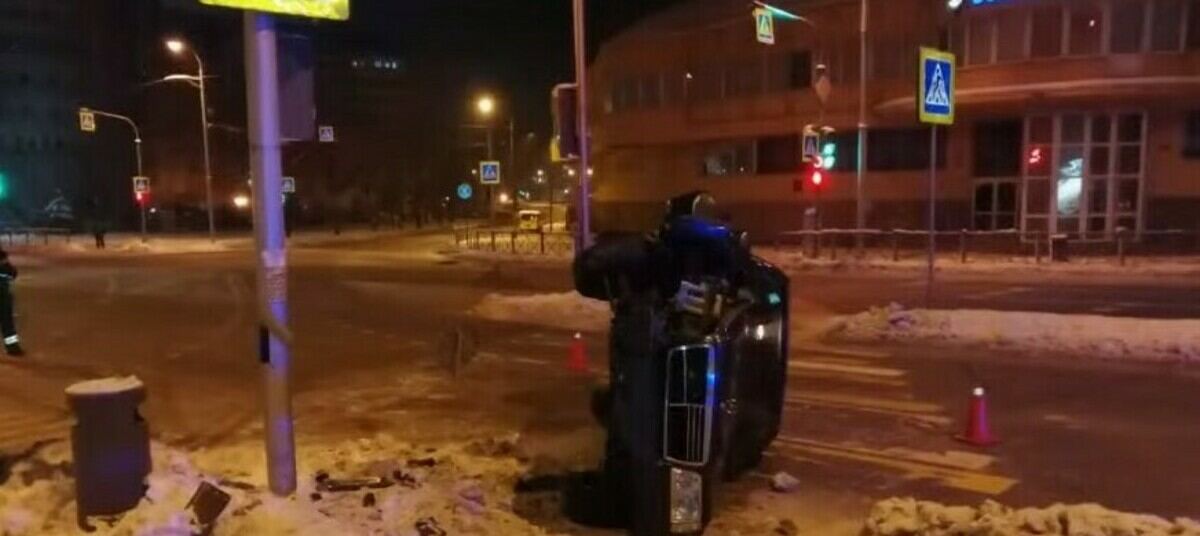В Калининграде Mercedes на перекрёстке врезался в столб и упал на бок. Видео с места ДТП опубликовали в группе «Безопасного города» «ВКонтакте» в четверг, 22 декабря.