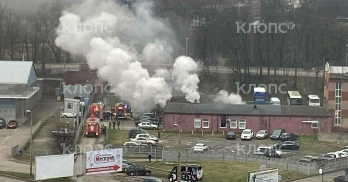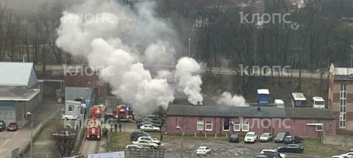 Информация о пожаре поступила в понедельник, 23 января, около 15:00. Жители высотки напротив сообщают, что из одноэтажной постройки валит густой серый дым. На месте работает несколько пожарных машин.