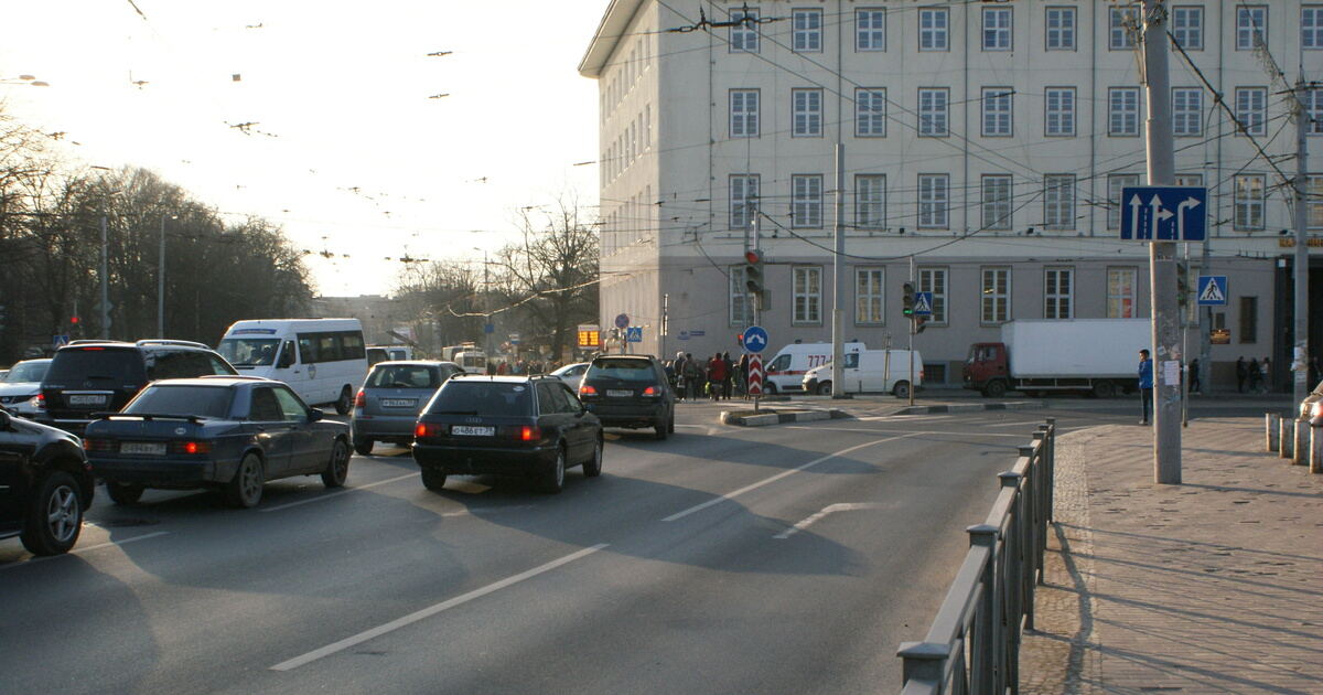 Калининградские автомобилисты просят городские власти изменить схему движения транспорта на площади Победы. По их мнению, необходимо демонтировать дорожный знак, который запрещает движение автомобилям прямо по трамвайным путям на пр. Мира.