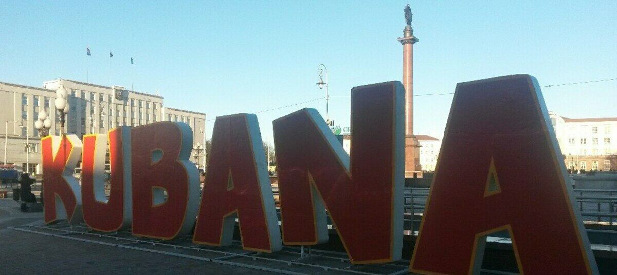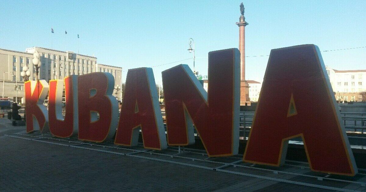 В центре Калининграда появился огромный логотип фестиваля "Кубана". Как сообщают очевидцы, буквы установили на площади Победы в понедельник утром.