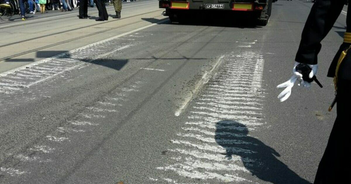 В Калининграде после прохождения во время парада Победы танка Т-34 на асфальте на Ленинском проспекте и улице Черняховского остались следы. Как сообщили Клопс.Ru очевидцы, покрытие испорчено бороздами от трака ("гусениц").