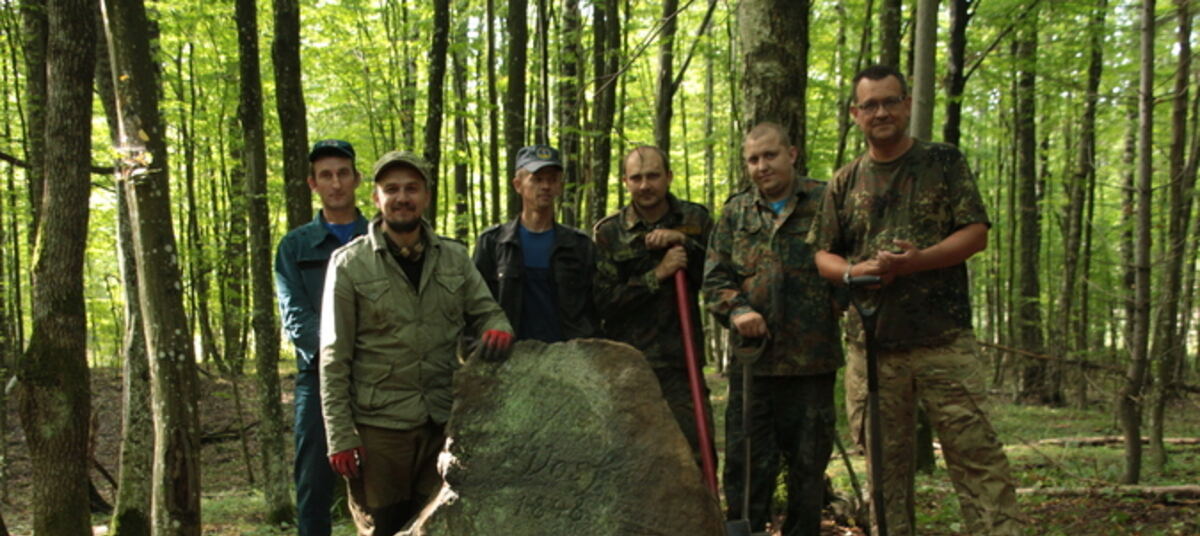 В субботу утром перед дирекцией природного парка "Виштынецкий" собрались калининградские и гусевские краеведы, чтобы вместе с лесничими восстановить историческую справедливость – вернуть на место сваленный набок памятный камень. Из всех известных памятных валунов Роминтской пущи камень Фосса оказался самым старшим, он датируется 1848 годом.