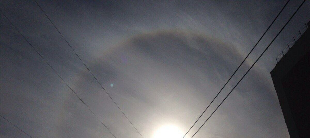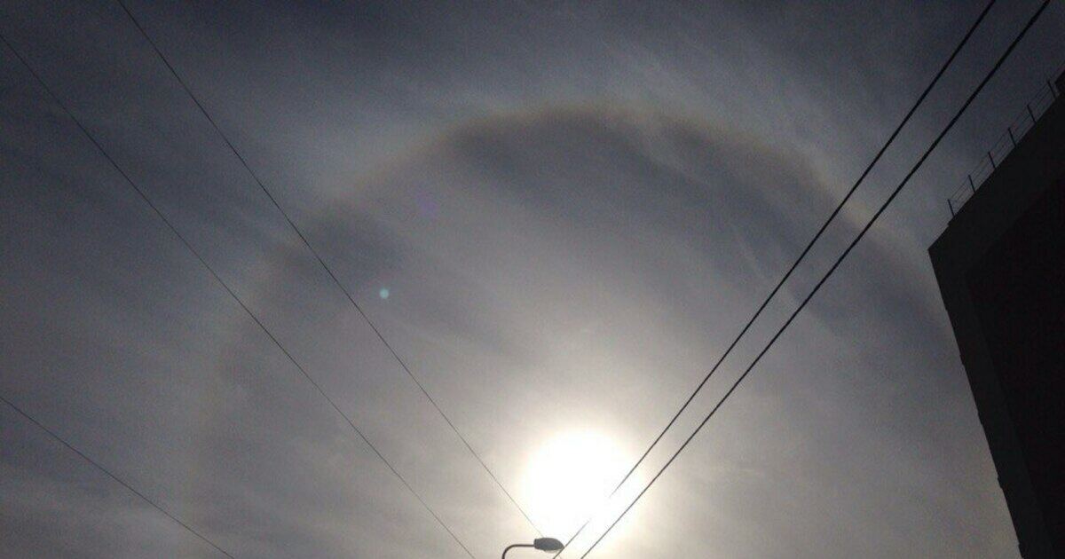В понедельник, 12 октября, в небе над Калининградом появилось редкое явление - гало. Так называется визуальный эффект, когда солнце находится в радужном кольце.