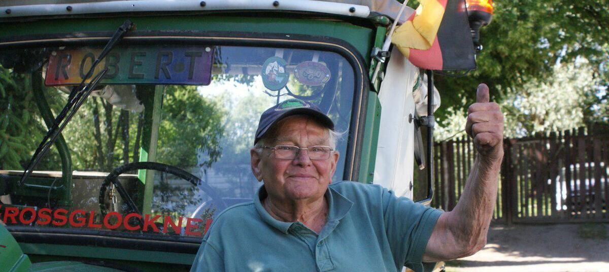 Трактор марки Deutz 1961 года выпуска способен развивать скорость только до 18 км/ч. Из-за этого ему нельзя ездить по немецким автобанам, но в России он путешествует по всем дорогам. Местные дороги ему нравятся, правда, 81-летний автомобильный механик отметил, что работать ещё есть над чем. Все последние 20 лет пенсионер восстанавливал машину, чтобы была возможность путешествовать.
