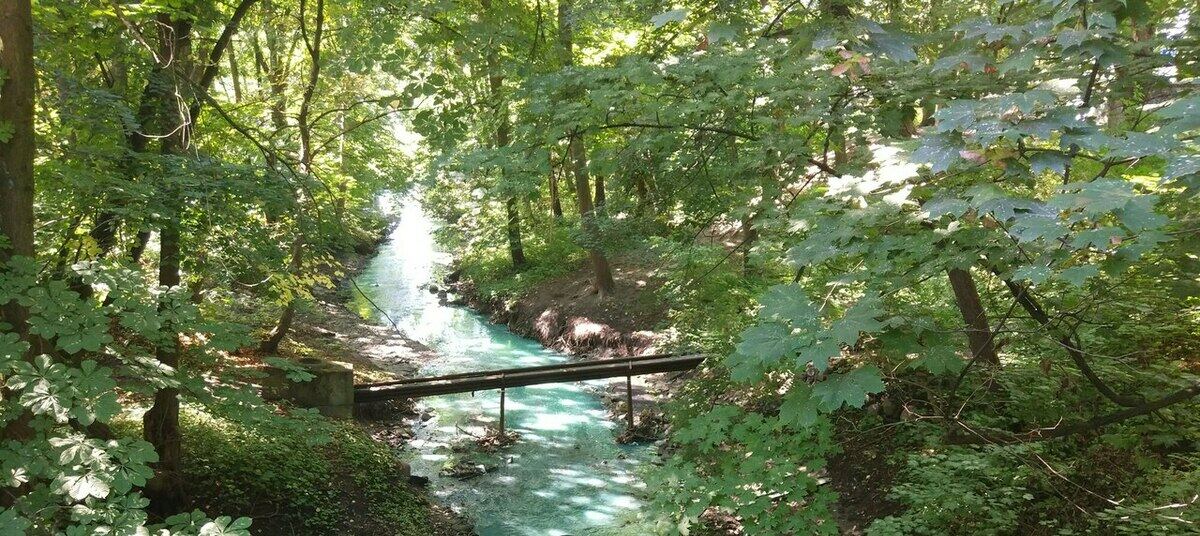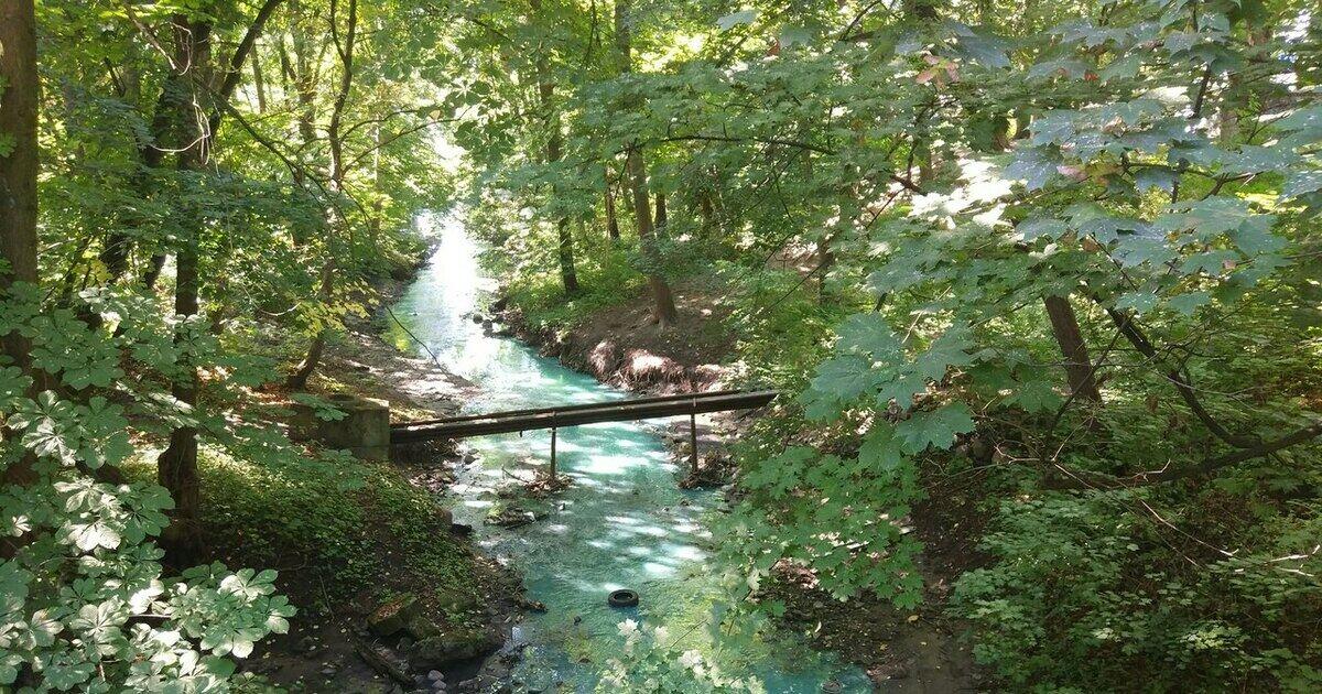 В Калининграде вода в Парковом ручье окрасилась в бирюзовый цвет. Об этом Клопс.Ru сообщил очевидец.