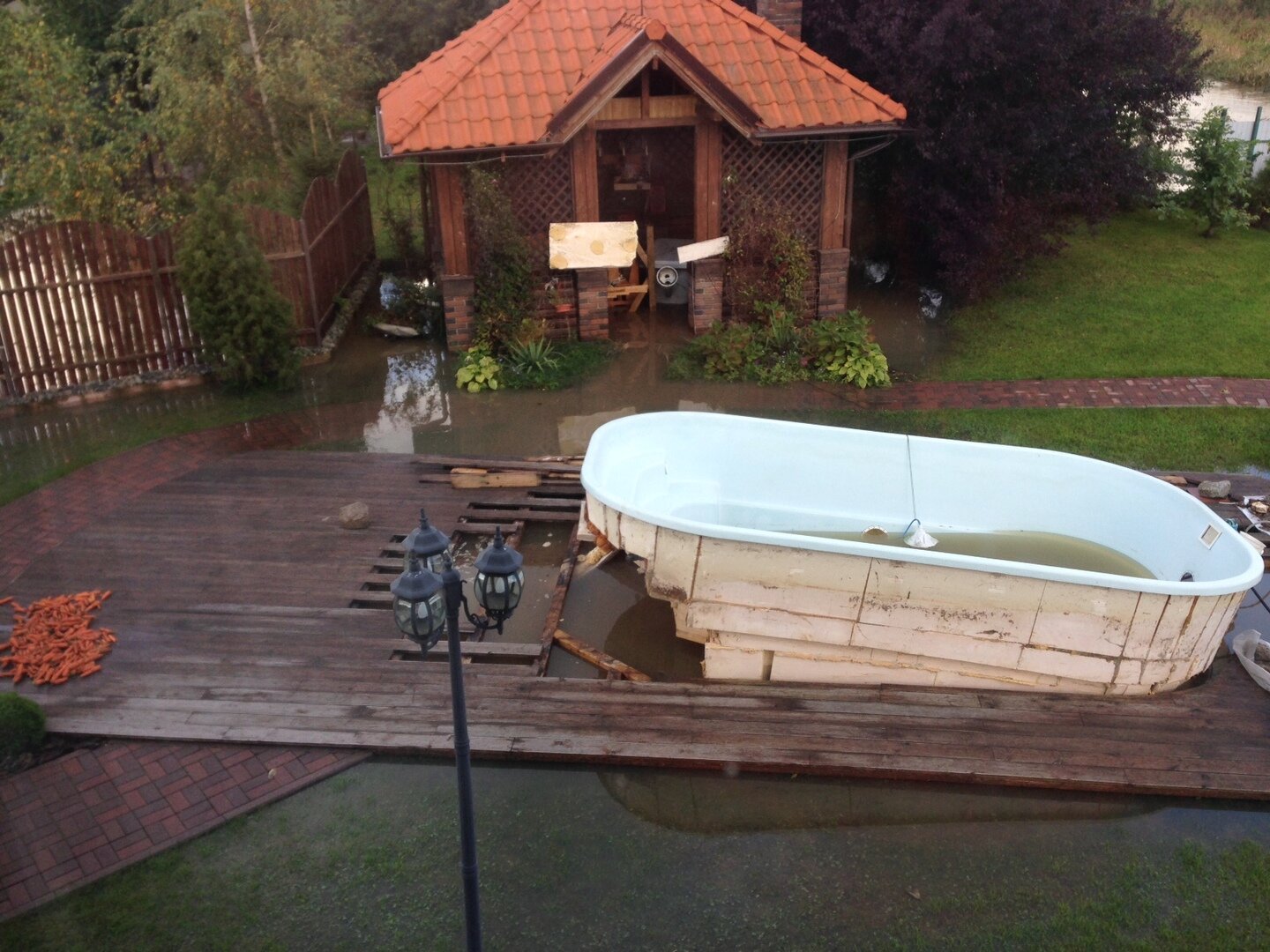 "У нас больше 400 участков в обществе. Многие из-за потопа не могут попасть с поезда на свои участки, потому что затопило единственный мостик, который идет к железной дороге. Он стоит под водой. Сейчас к домам добирается кто-то на машинах, а кто-то снимает обувь, закатывает брюки выше колен и идет вброд. Школьников всегда забирает автобус, но как-то был один раз, когда он не смог зайти в СНТ, потому что сильно размыло дорогу, — рассказал Герман Буренков. —Вот они раскопали там свою переправу и вода стала уходить сначала потихоньку, но потом снова уровень стал подниматься".