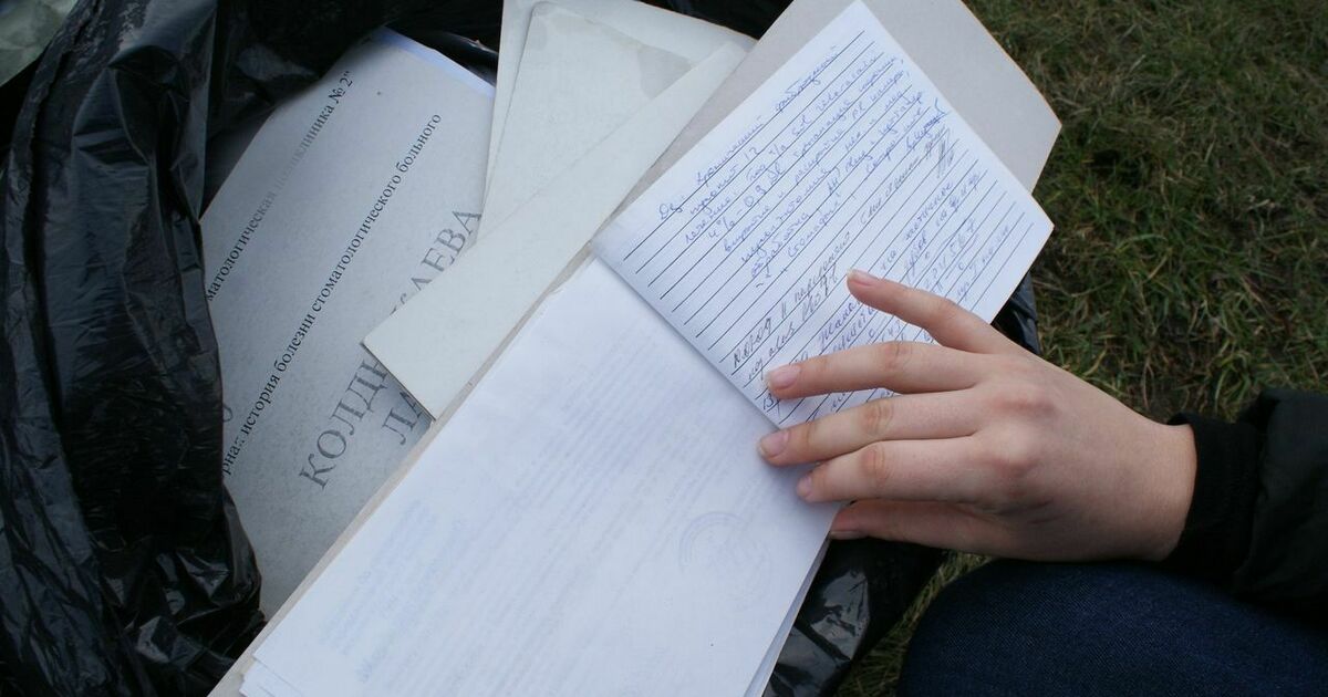 Как рассказал Клопс.Ru местный житель Игорь Кузьмин (фамилия изменена – Ред.), его мама выбрасывала мусор и обратила внимание на кипу бумаг, торчащих из трех черных мусорных пакетов. Подойдя ближе, калининградка обнаружила, что все эти бумаги – амбулаторные карты из городской стоматологической поликлиники, которая находится в другом конце города, на улице Пролетарской. "Она вроде бы даже нашла карту своих знакомых", - говорит Игорь.