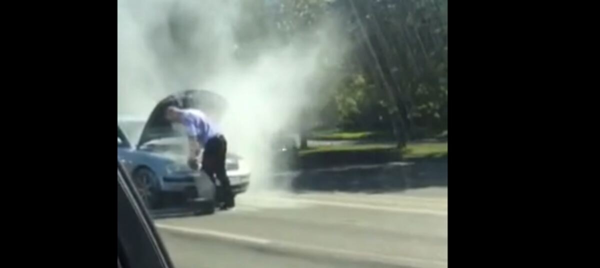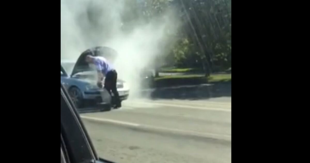 Как сообщили Клопс.Ru очевидцы, водитель "Фольксвагена Пассат" остановился и принялся самостоятельно тушить переднюю часть автомобиля.