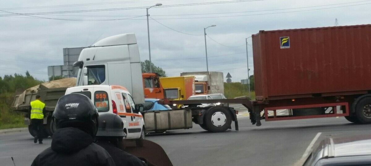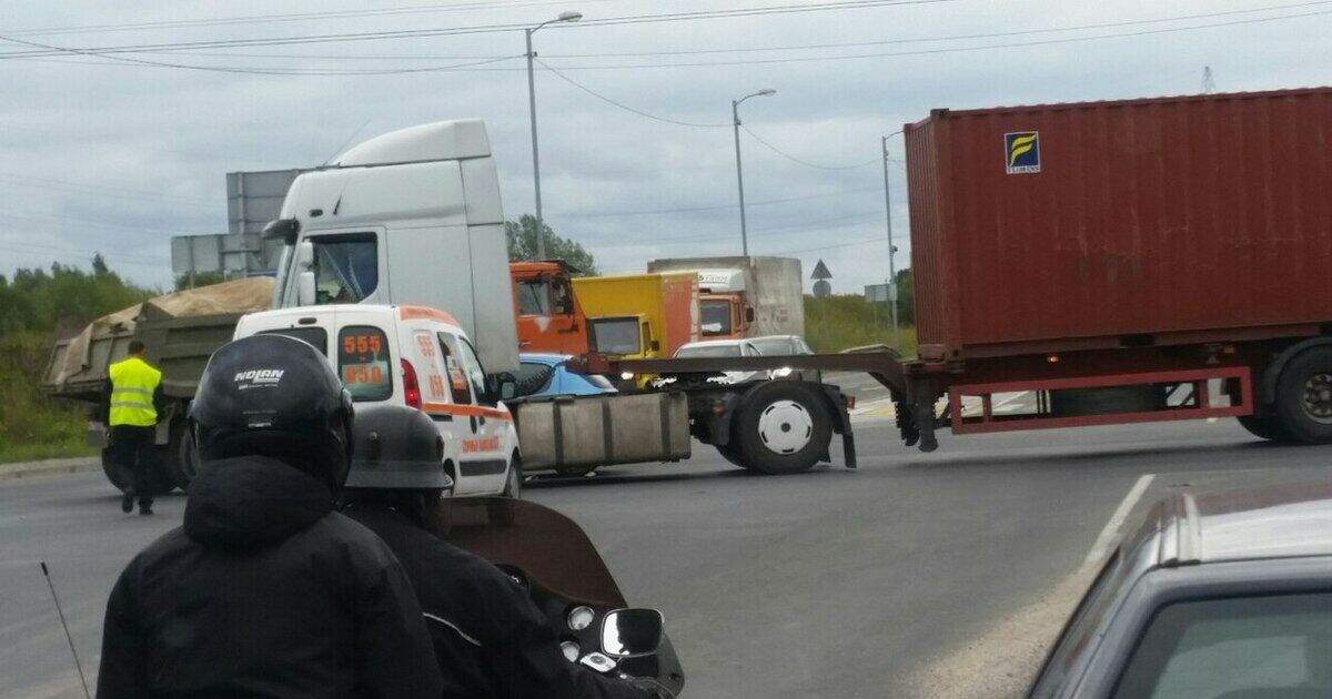 По мнению очевидцев, легковой автомобиль попал в "слепую зону" фуры, после чего произошла авария. Никто из людей не пострадал. Машины получили технические повреждения.