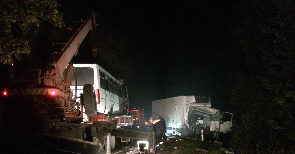 В отношении водителя грузовика, совершившего столкновение с пассажирским автобусом под Правдинском, возбуждено уголовное дело.