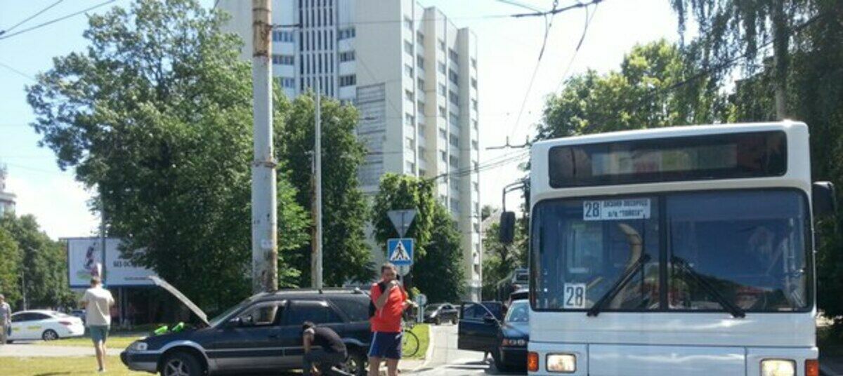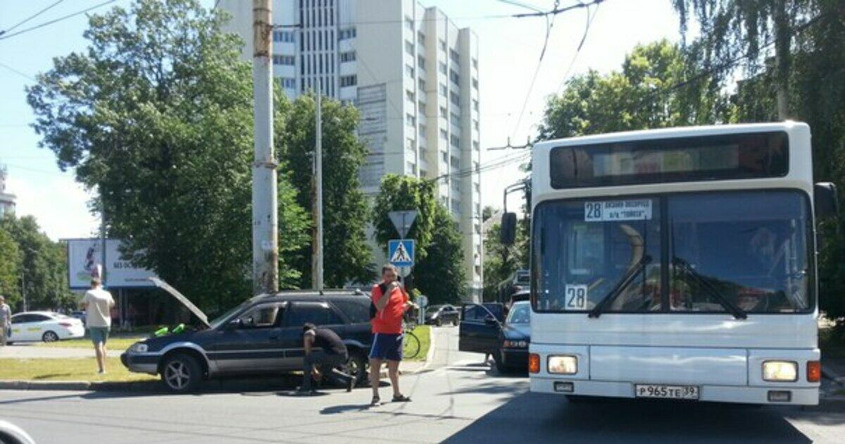 В Калининграде на улице Леонова, при повороте на участок с круговым движением к улице Борзова произошло ДТП с участием рейсового автобуса №28, об этом сообщают очевидцы.