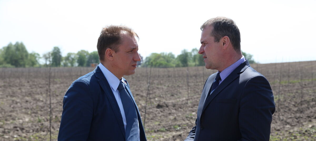 Позже в поселке Маяковское парламентарии осмотрели крестьянско-фермерское хозяйство «Табухова З.Х.» По словам инвесторов, первый яблоневый сад площадью почти 40 гектаров здесь был заложен весной этого года, а урожай в промышленных масштабах планируется собирать уже на третий год. Кроме того, в планах на 2016 год стоит вопрос о строительстве хранилища для плодово-ягодных культур, а также их переработке.