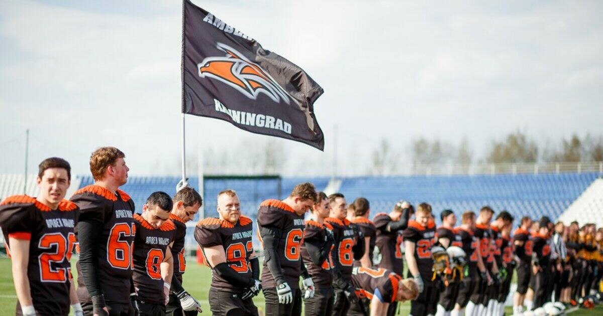 В Калининграде на стадионе "Сельма" состоялась первая в истории города домашняя игра международного уровня: калининградские "Янтарные Ястребы" вышли на поле против витебских "Рысей".