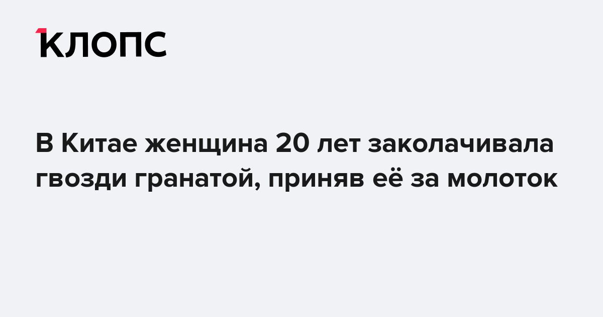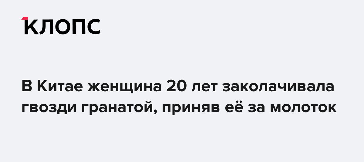 В Китае 90-летняя женщина 20 лет заколачивала гвозди гранатой, приняв её за молоток. Об этом пишет South China Morning Post.