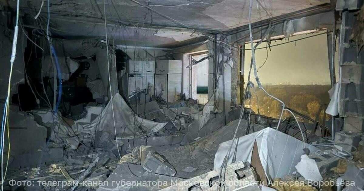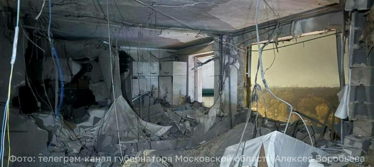 В подмосковном Красногорске дрон-камикадзе врезался в квартиру высотки на 14-м этаже, имеются раненые. Об этом в своём телеграм-канале сообщили глава региона Андрей Воробьёв в пятницу, 24 октября.