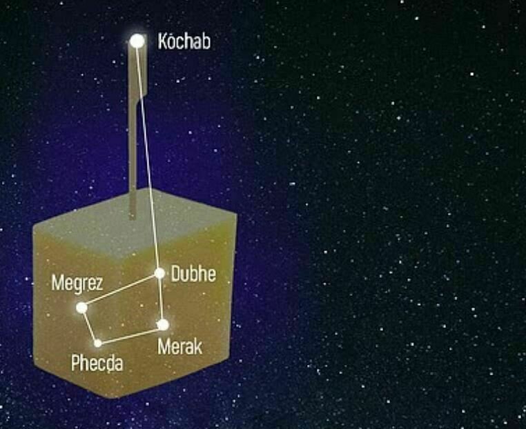 «"Сыр на палочке" образован звёздами Дубхе, Мерак, Фекда и Мегрец, входящими в Большую Медведицу, а символический стержень через Кохаб продолжается до Малой Медведицы», — рассказал о своей идее Томпсон.