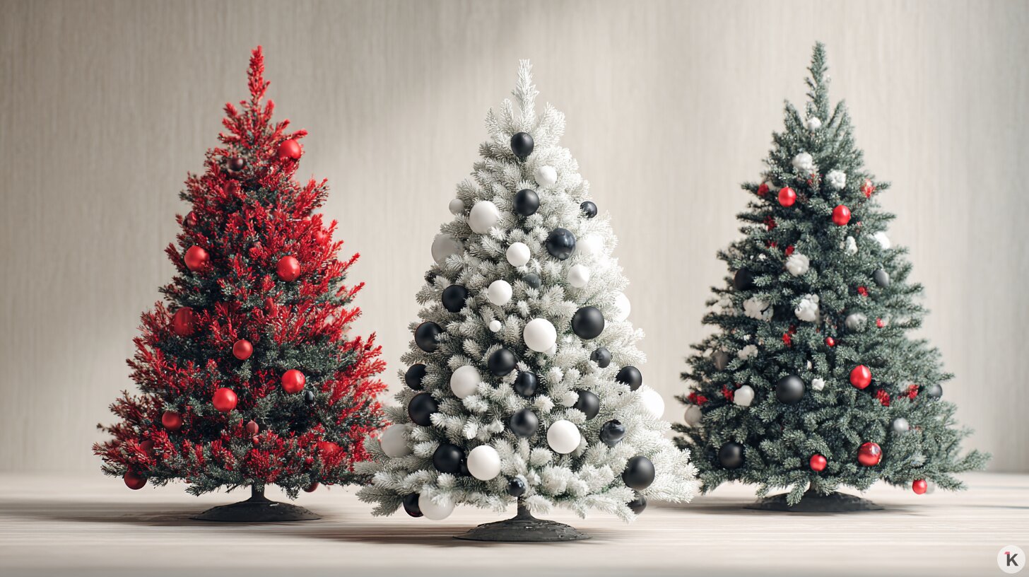 Для просторной квартиры с лаконичным интерьером подойдёт однотонная ёлка с чёрными, белыми или красными украшениями, например, монохромными шарами из металла, стекла и текстиля. В качестве альтернативы живой ёлке часто используют каркасы из натуральных материалов, таких как дерево и бумага.