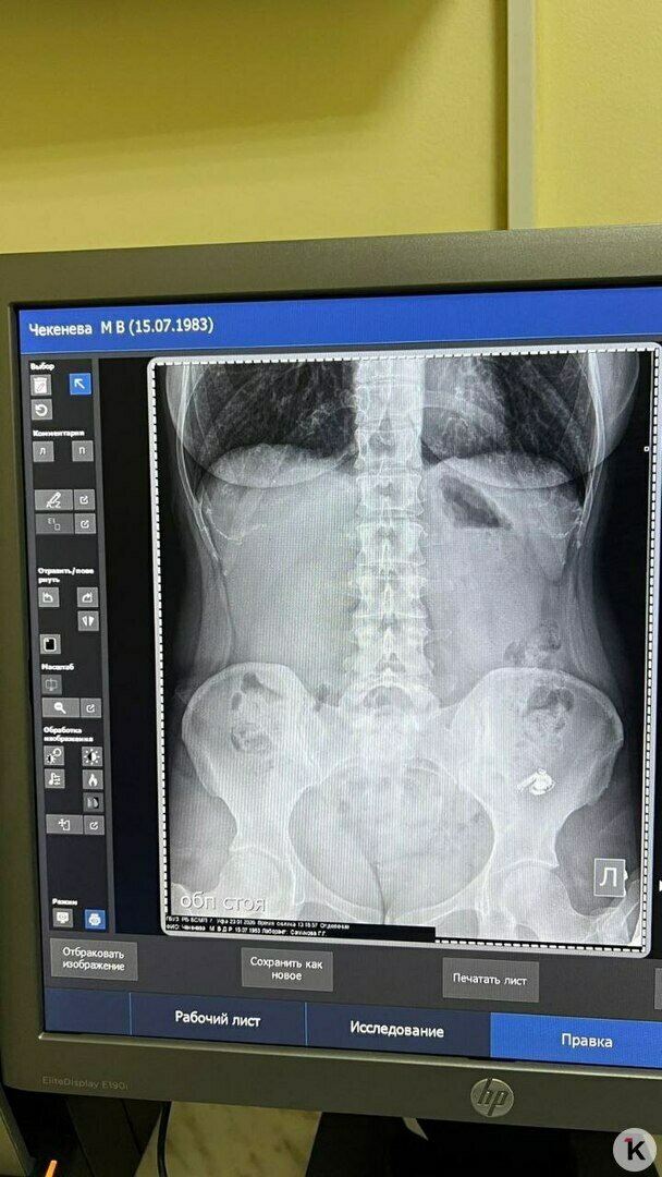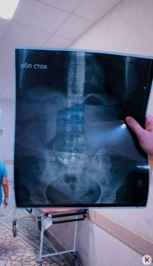 Повторный снимок, к счастью, подтвердил, что всё идёт как надо, инородный предмет постепенно опускается ниже по ЖКТ. Ей рекомендовали мягкую диету для улучшения перистальтики кишечника и отправили ждать дальше. Наконец, поздно вечером на вторые сутки проблема благополучно разрешилась.