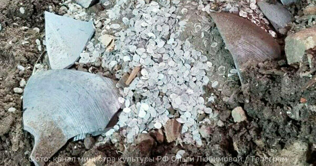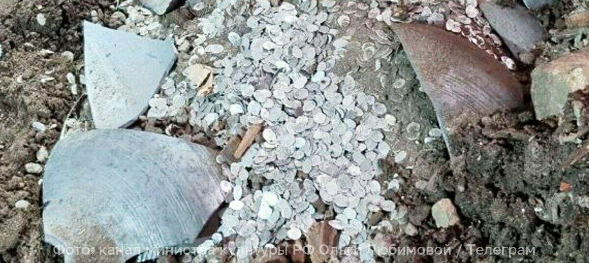 Сокровища нашли во время реставрационных работ в здании Российского научно-исследовательского института культурного и природного наследия имени Дмитрия Лихачёва. Керамический сосуд с чеканными монетами был спрятан на втором этаже.