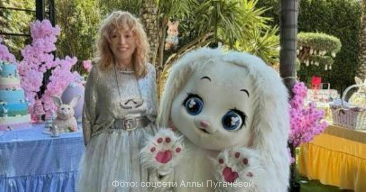 Алла Пугачёва отмечает Пасху вместе с огромным голубоглазым зайцем или кроликом, в окружении больших яиц, подвешенных на пальмах. Фотографии Примадонна выложила в соцсетях в понедельник, 13 апреля.