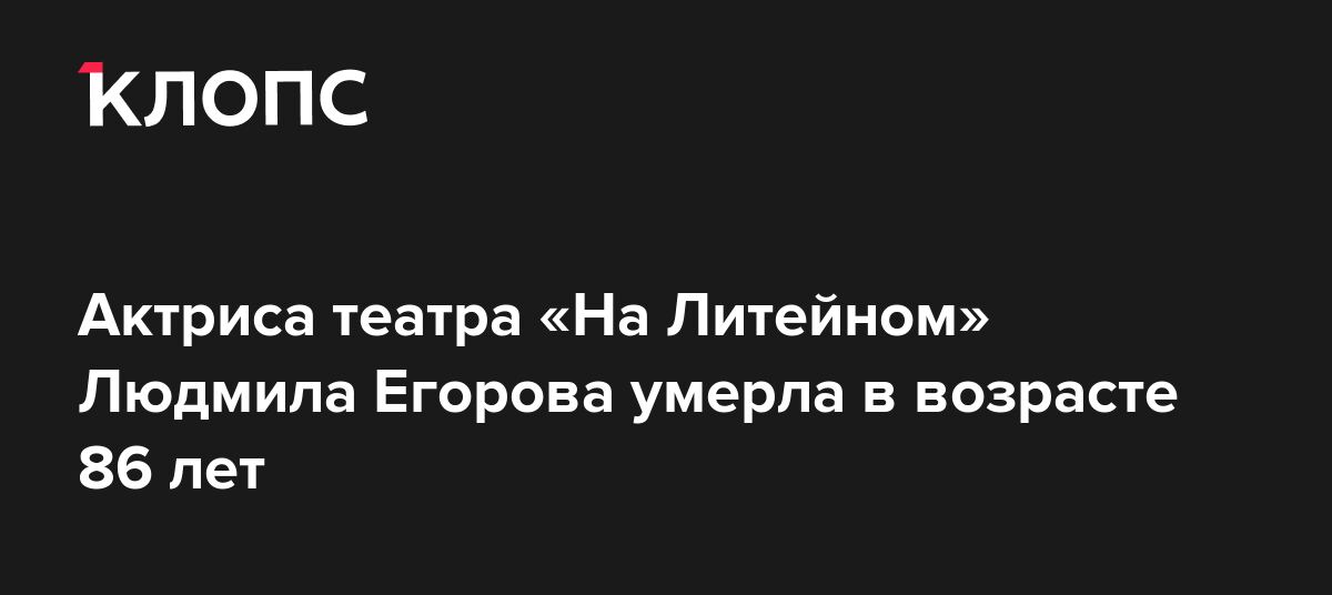 «С прискорбием сообщаем, что 15 октября не стало актрисы Театра «На Литейном» Людмилы Ивановны Егоровой», — сообщили в театре.
