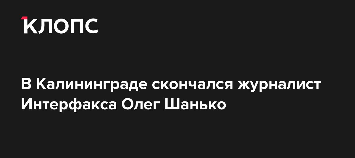 В пятницу, 27 февраля, в Калининграде на 65-м году жизни умер журналист Олег Васильевич Шанько. Об этом сообщает информационное агентство Интерфакс, а также пресс-служба правительства региона.