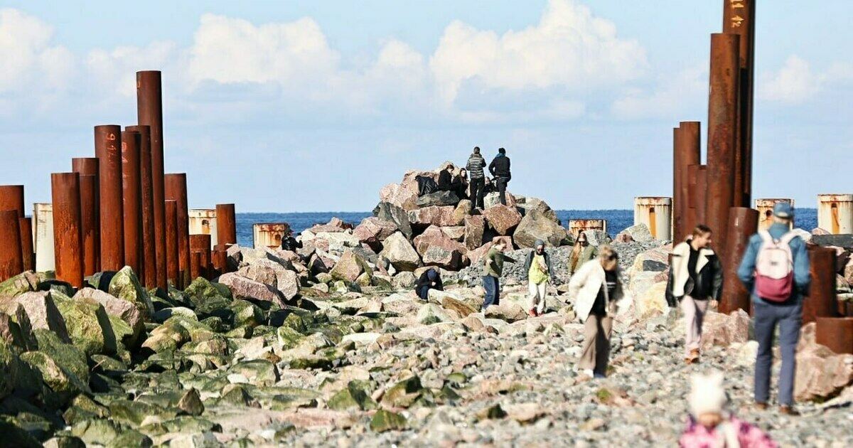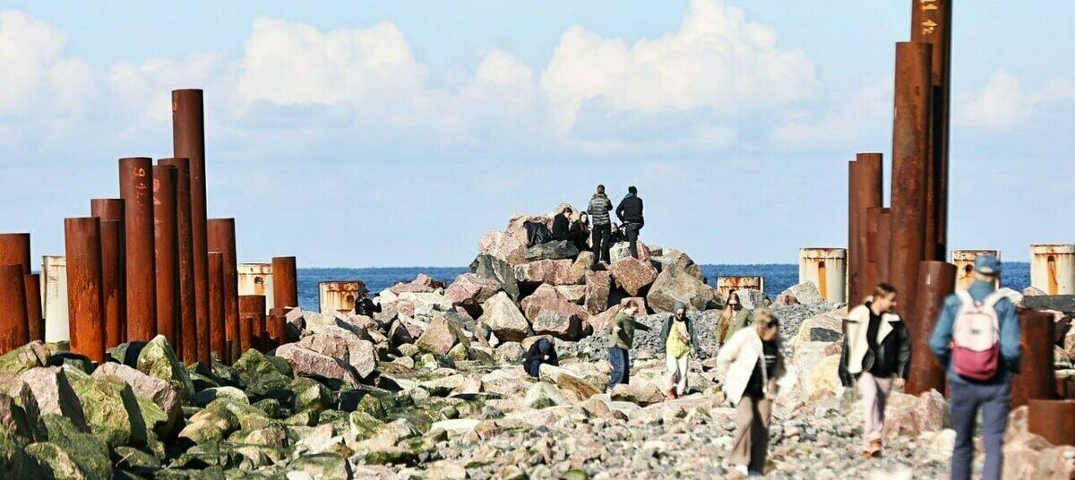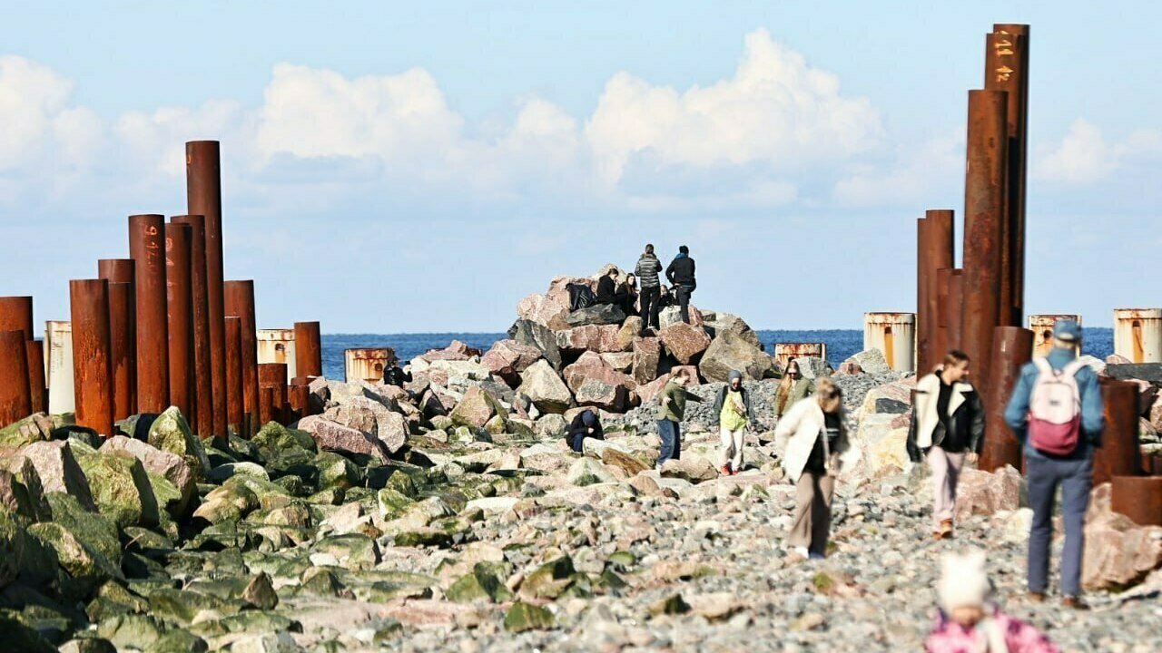 Фото дня: гости Светлогорска гуляют по кручам и ржавым столбам, на месте которых уже мог быть променад