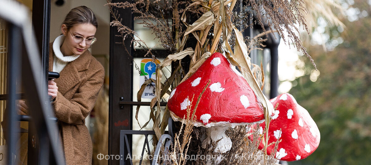 Погода способствует неспешным прогулкам: ещё тепло, а с деревьев опадают первые каштаны. Витрины и входы в заведения украшают декоративные тыквы, кукуруза, крендели, грибы и композиции из растений. Яркий осенний антураж можно увидеть на Ленинском проспекте, улице Пролетарской и возле Нижнего озера. Как проходит уютное преображение города — смотрите в фоторепортаже ниже.