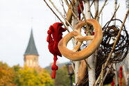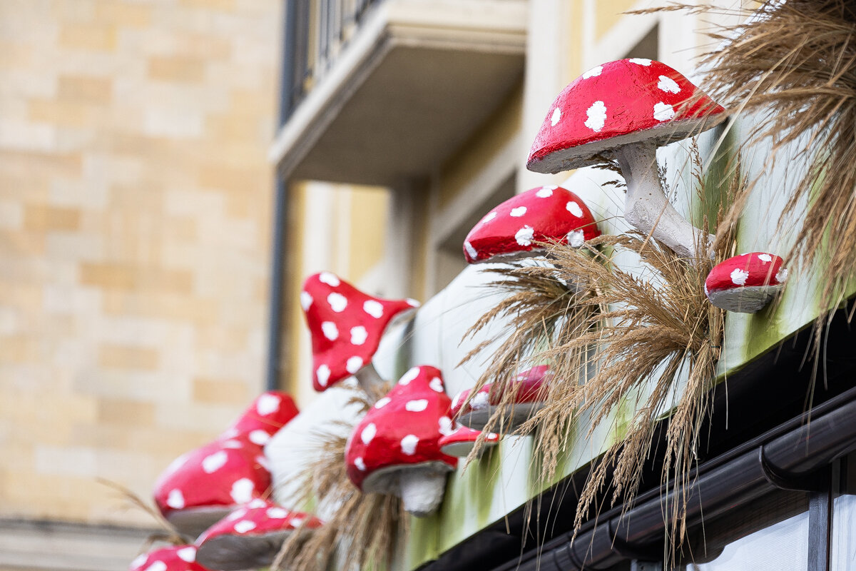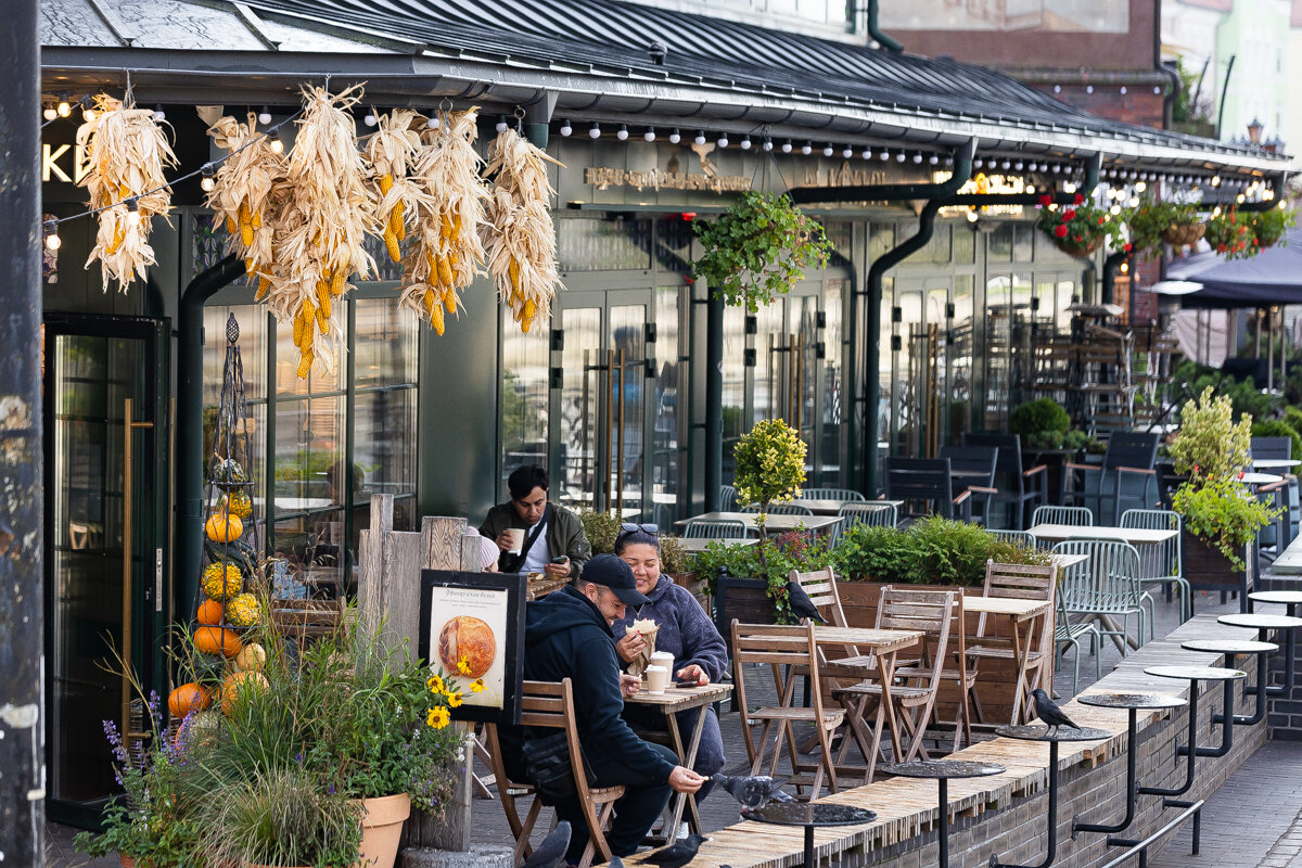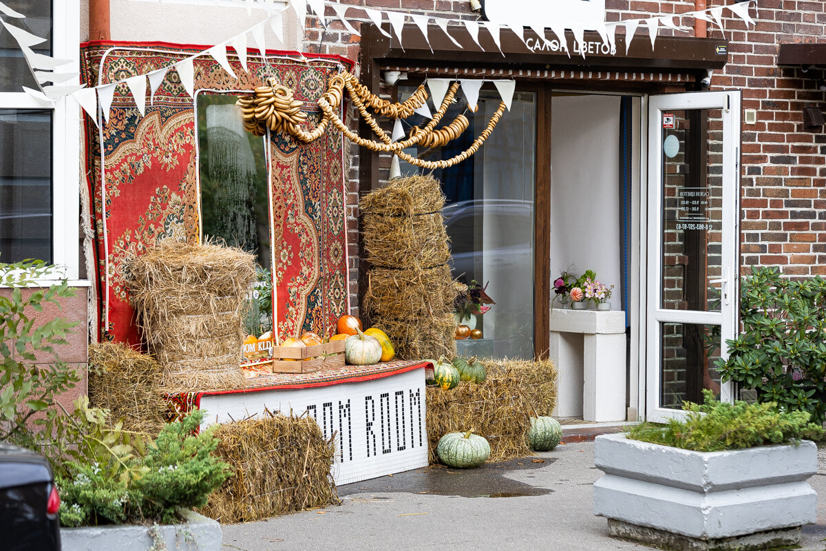 В Калининграде кафе и магазины начали украшать витрины и прилавки осенним декором. Фотокорреспондент «Клопс» прогулялся по центральным улицам в среду, 8 октября, чтобы запечатлеть, как город наряжается в золотые и оранжевые тона.