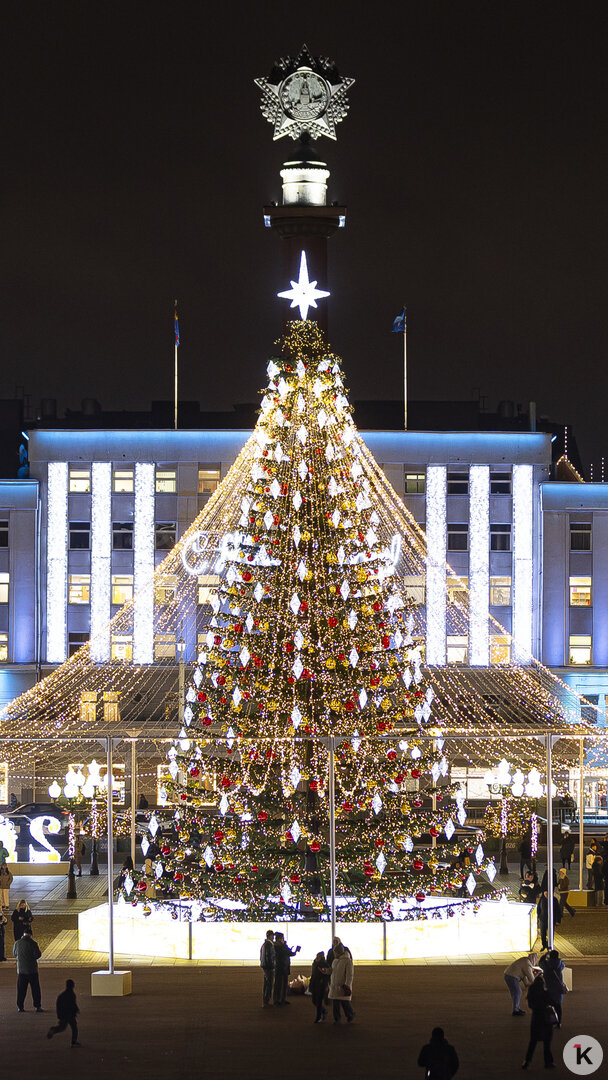В Калининграде на площади Победы собрали и украсили главную городскую ёлку. Новое искусственное дерево запечатлел фотокорреспондент «Клопс».