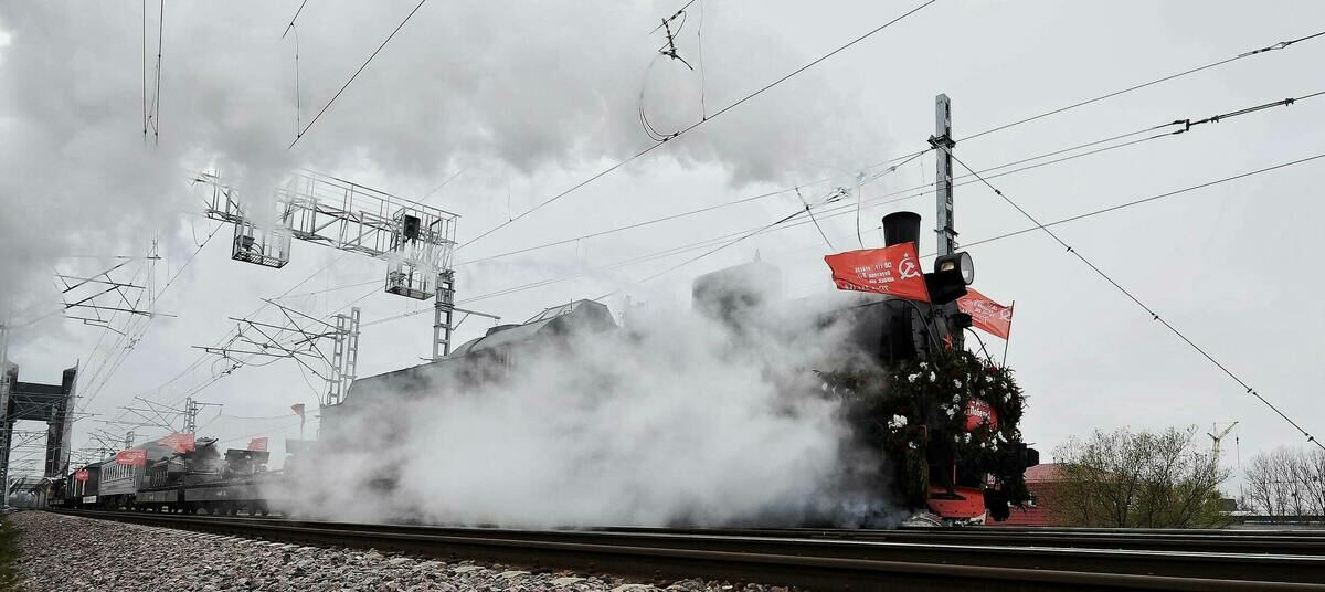 Фото дня: поезд Победы пустили по новому мосту в Калининграде