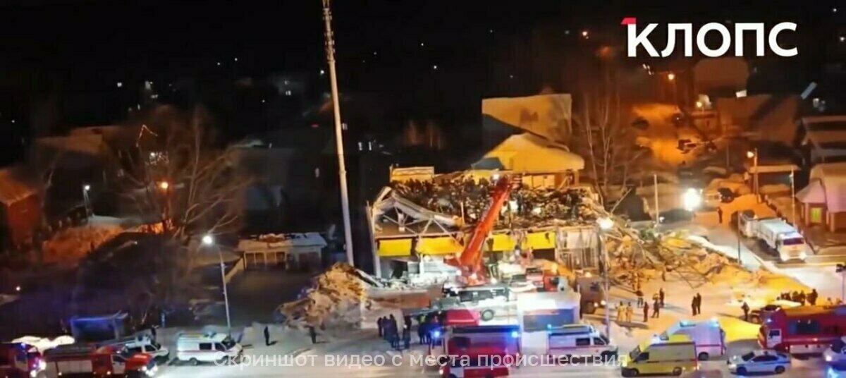 На кадрах, оказавшихся в распоряжении «Клопс», видно, как на месте происшествия работают экстренные службы. Территория вокруг разрушенного здания оцеплена, рядом стоит спецтехника, а дорога возле торгового центра почти полностью занята автомобилями с включёнными проблесковыми маячками. Зеваки наблюдают за операцией на расстоянии.