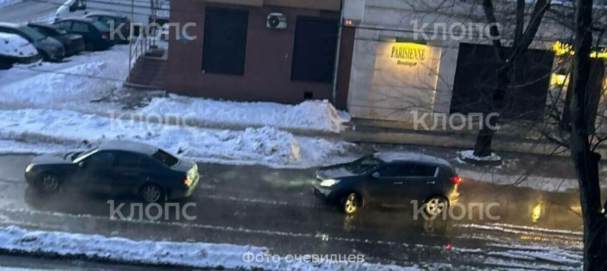 Авария произошла, предположительно в районе школы №12. Потоки воды хлынули на проезжую часть. На 20-градусном морозе машины буксуют и оказываются в ледяной западне. Прохожие помогают водителям толкать авто.