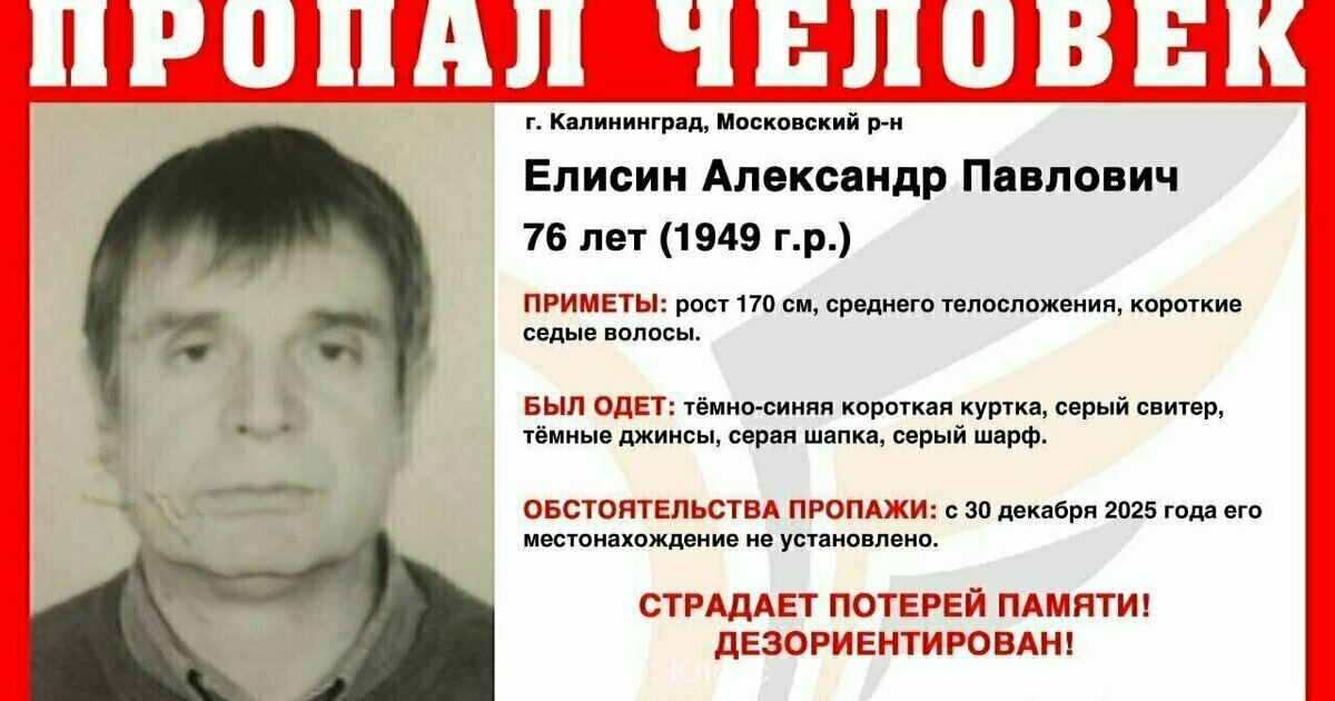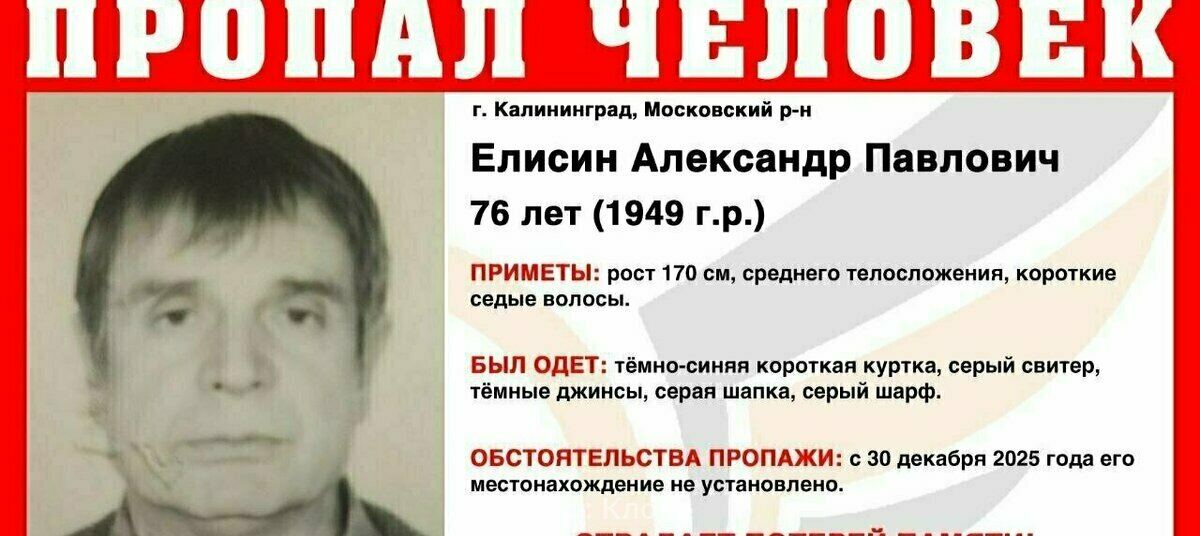 В ПСО «Запад» сообщили, что последняя поездка Елисина по карте «Волна Балтики» зафиксирована 30 декабря 2025 года. Волонтёры и полиция обзвонили больницы, проверили морги — похожего человека нигде нет. На данный момент нет никакой информации о том, где может находиться Александр Павлович.