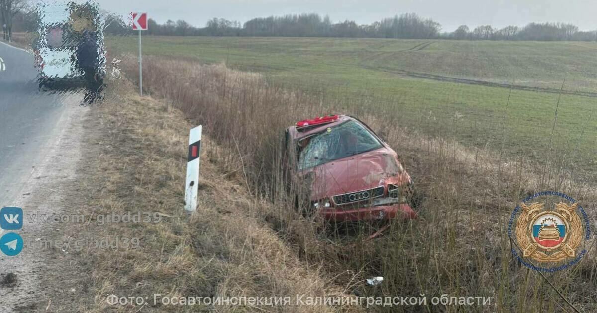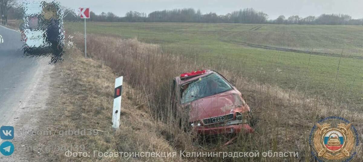 В Гусевском районе Audi съехал с дороги и помял крышу - Новости Калининграда | Фото: Госавтоинспекция Калининградской области