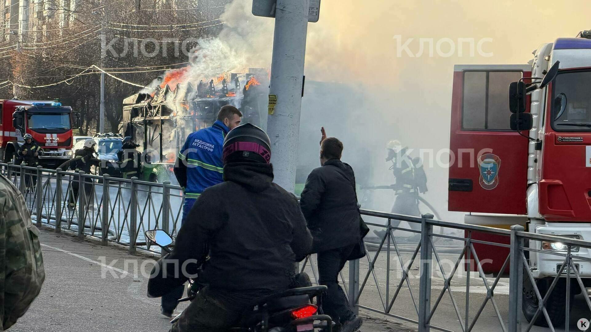 «В какой-то момент я подняла голову — пламя. Начали все суетиться. Троллейбус был в нескольких десятках метров. Сразу было яркое пламя, много огня, потом дым, потом снова вспышки и чёрный дым. Через несколько минут приехали пожарные, было страшно туда подходить».