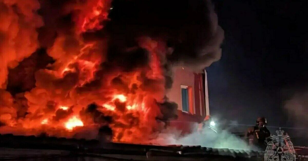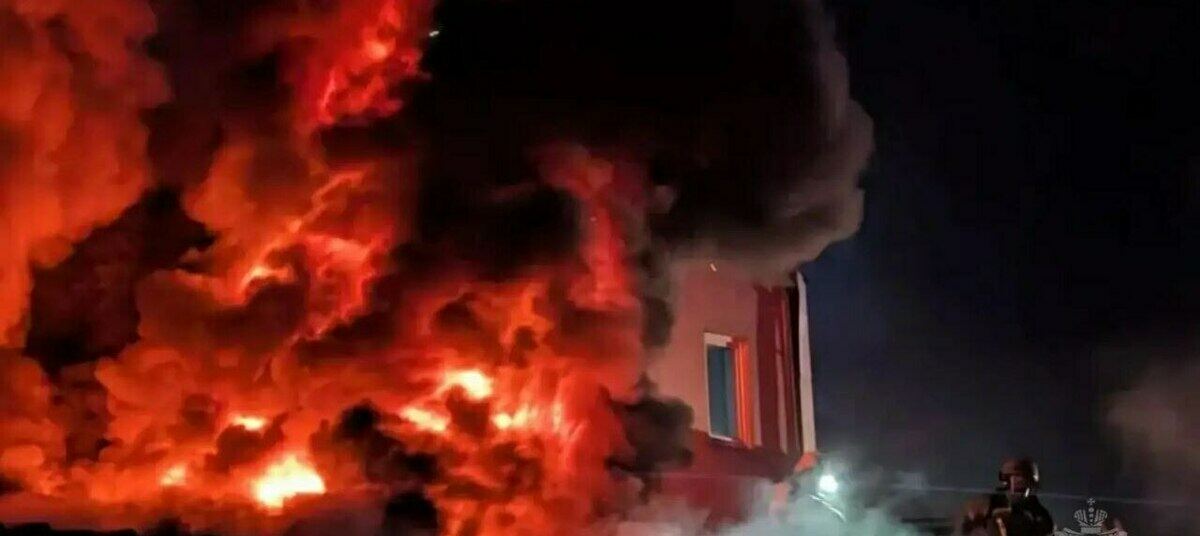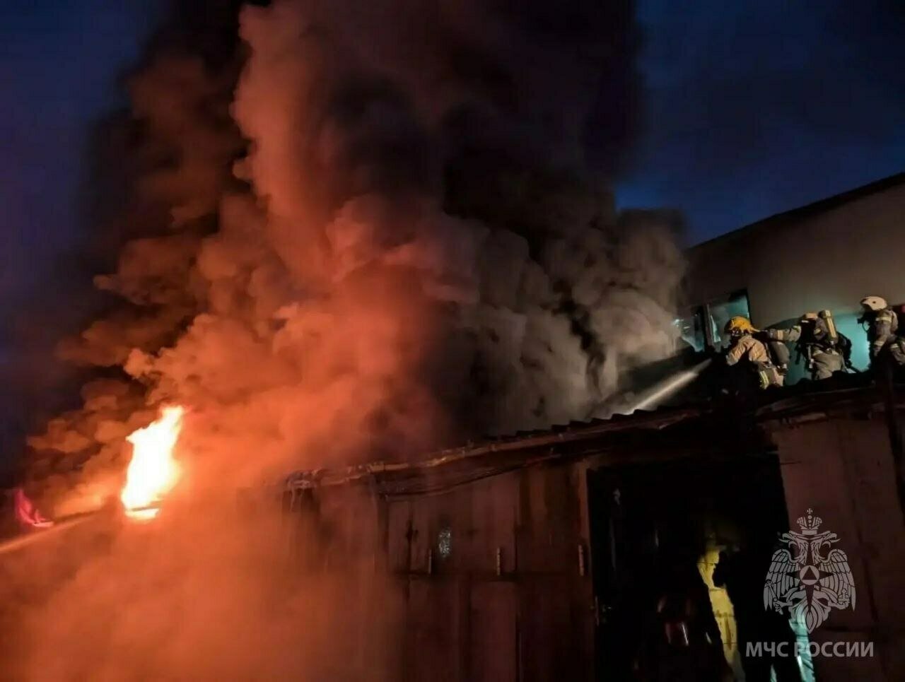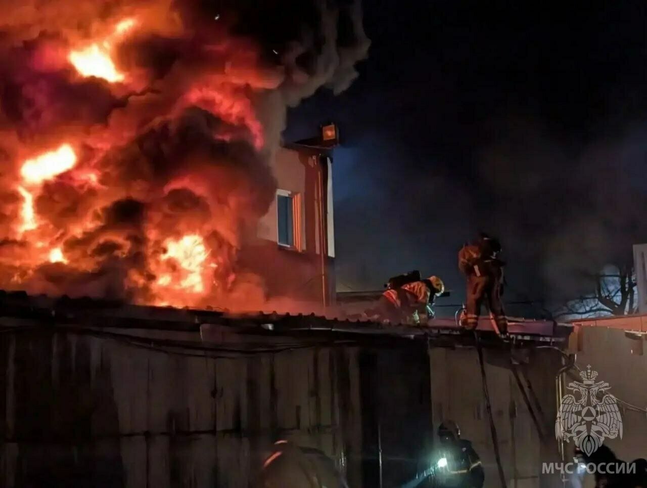 Огонь охватил кровлю здания, площадь возгорания составила около 200 квадратных метров. По предварительным данным, пострадавших нет.