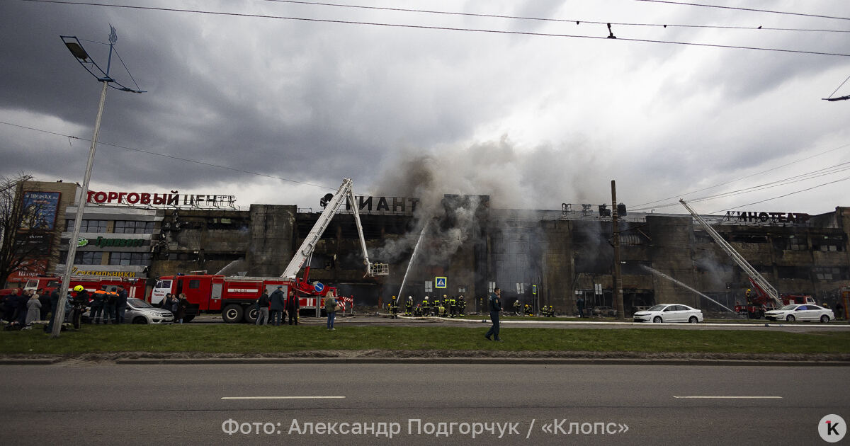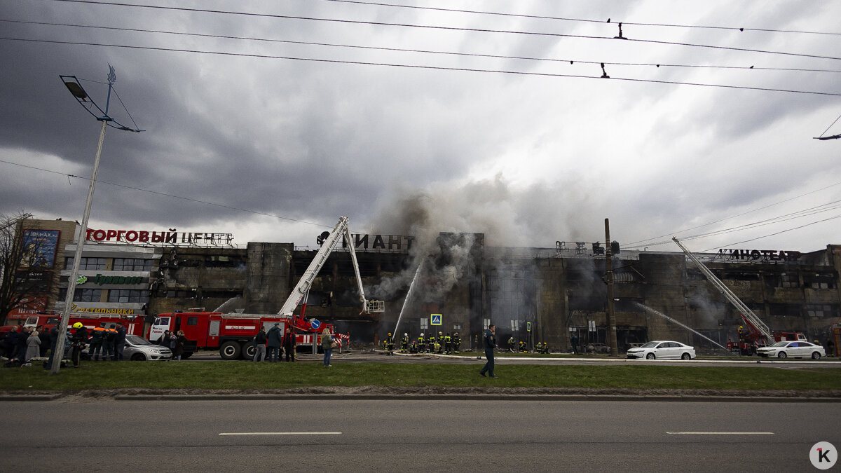 Пожарные начали разбирать конструкции ТЦ «Гиант» на Московском проспекте в Калининграде после ликвидации открытого горения.