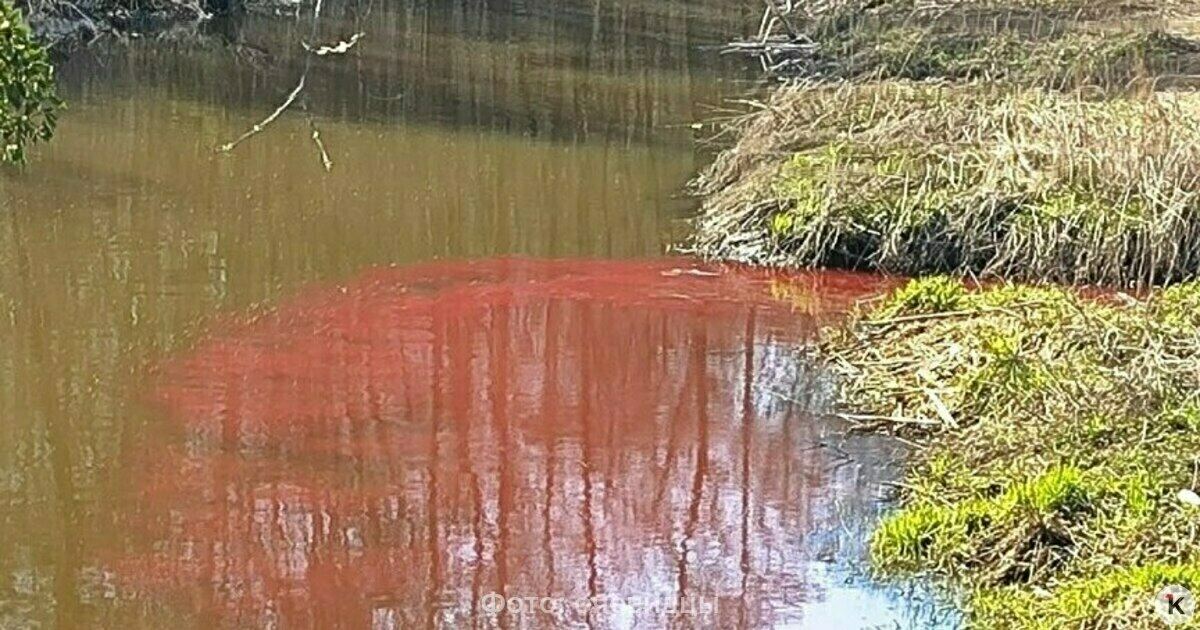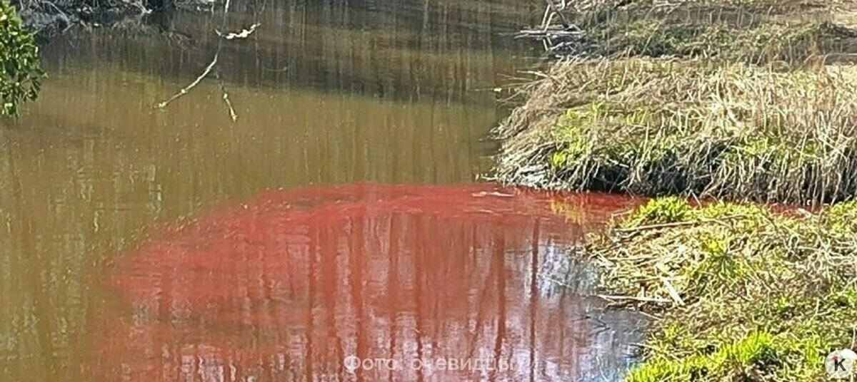 Река побагровела недалеко от Парка света. Местные жители предполагали, что в водоём сливают краску или даже кровь, а также жаловались на специфический запах.