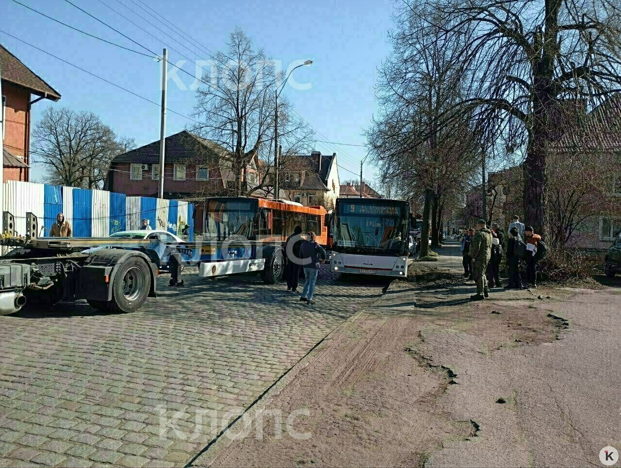 ДТП произошло днём в четверг, 16 апреля. Фура и легковушка заняли почти всю дорогу. По словам очевидцев, автобусы пытаются объехать место аварии по бордюру. Другие подробности не уточняются. О пострадавших не сообщается.