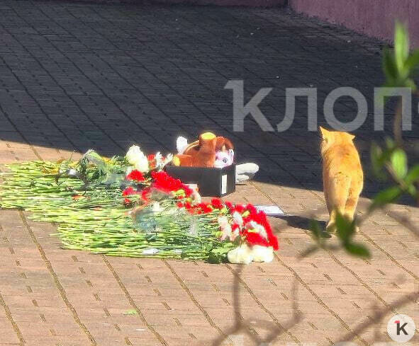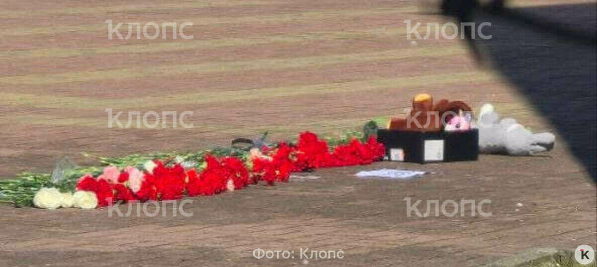 Возле калининградской гимназии, где восьмиклассница выпала с четвёртого этажа, образовался стихийный мемориал. Очевидцы поделились с «Клопс» фотографиями, сделанными в четверг, 23 апреля, — на следующий день после случившегося.