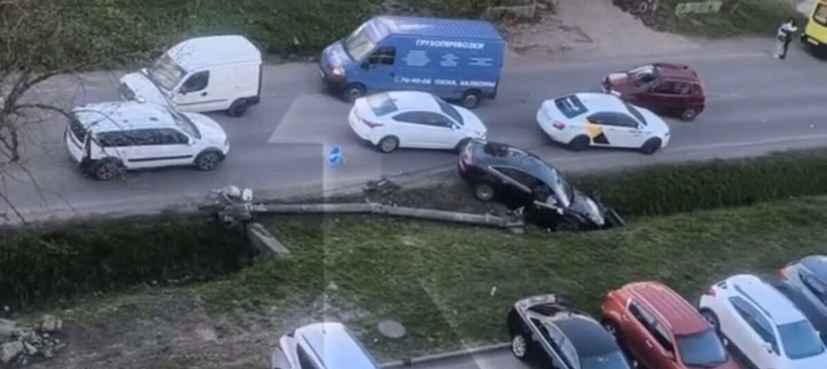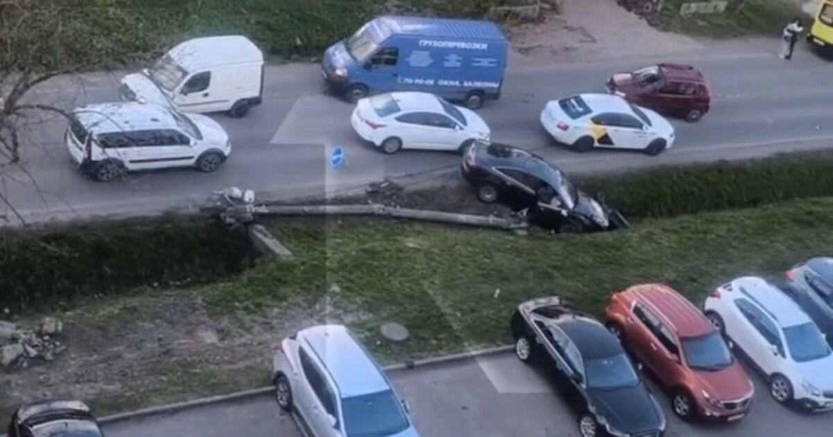В Калининграде на ул. Ломоносова чёрная иномарка снесла бетонный столб и съехала в кювет. Об этом «Клопс» сообщили очевидцы.