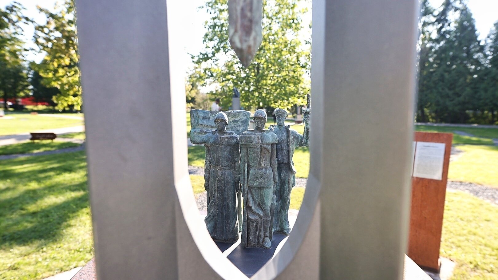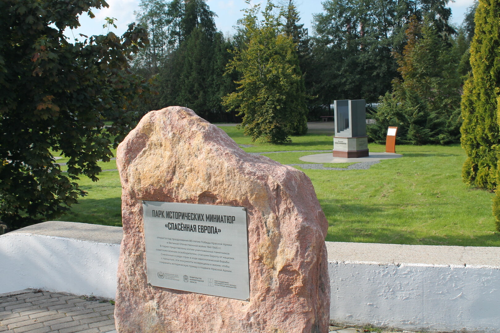 «Центральным элементом парка исторических миниатюр стала ландшафтная карта Восточной Европы. Контур угадывается по разделительным дорожкам, — рассказал полковник полиции в отставке, ветеран боевых действий Александр Щеглов. — Макеты воспроизводят семь монументов воинам-освободителям, которые ранее были снесены в Европе. За каждым — история подвига советского народа, периоды поклонения и забвения, акты вандализма. И дело вообще не в национальностях. На плитах мемориала 1 200 гвардейцам читаем фамилии не только русских, но и латышей, литовцев, эстонцев, память храним, мемориалы восстанавливаем».